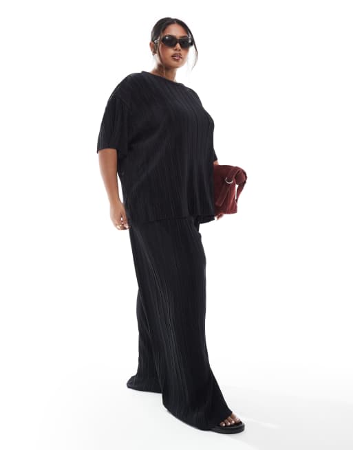 ONLY Curve - Sorte bukser med vide ben og plisseringer - Del af sæt