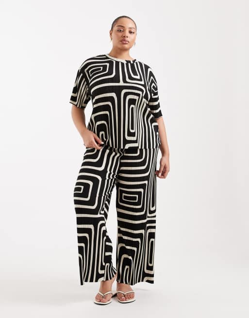 ONLY Curve - Sorte plisserede bukser med vide ben og abstrakt print - Del af sæt