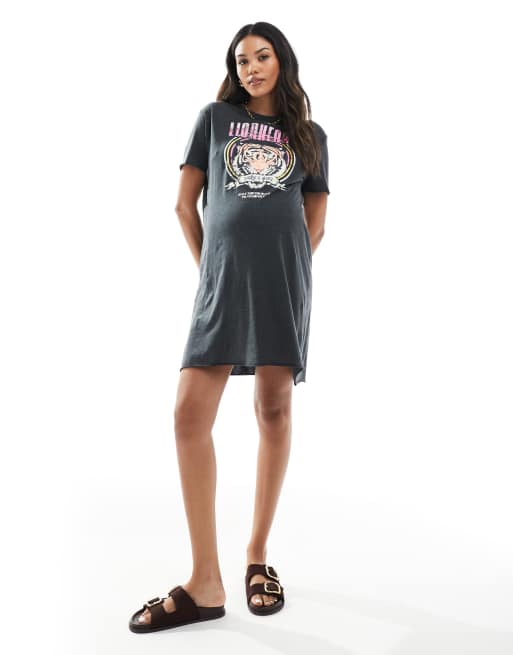 ONLY Maternity - Mørkegrå T-shirt-minikjole med tigerprint