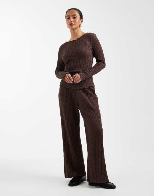 ONLY Petite - Chokoladebrunt sæt med langærmet top og bukser med tekstur