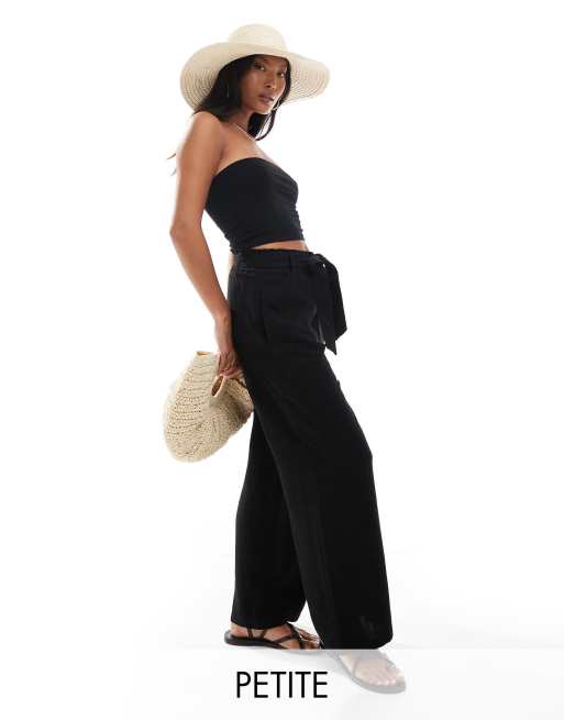 ONLY Petite - Sorte bukser med bindebånd i taljen og vide ben
