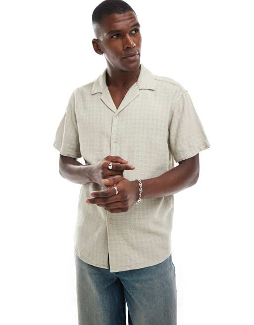 ONLY & SONS - Beige skjorte med korte ærmer og tekstur i hør