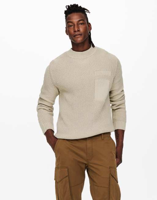 Only & Sons - Beige trøje med høj hals og tekstur