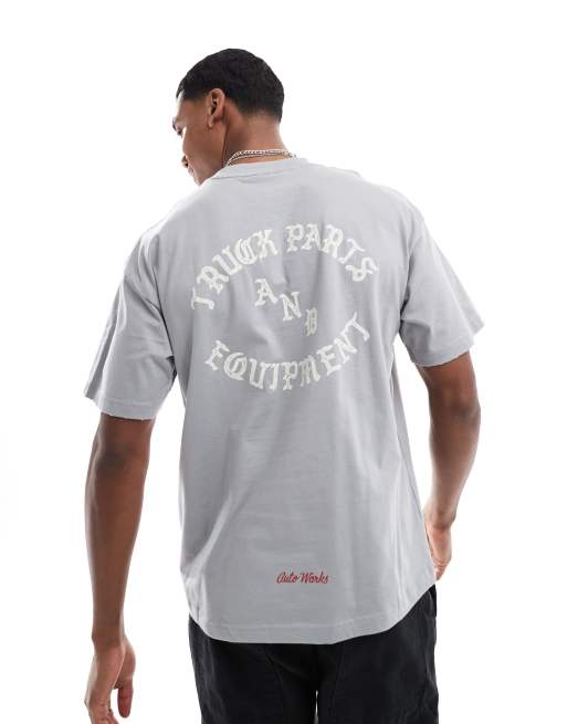 ONLY & SONS - Forvasket grå T-shirt med firkantet pasform og rygprint