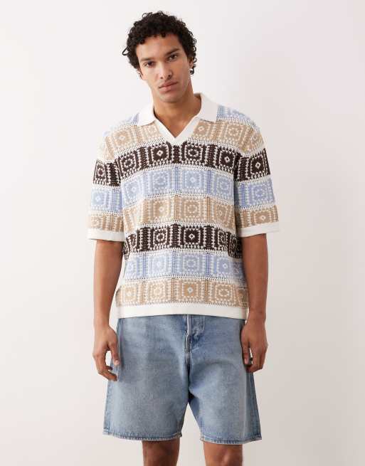 ONLY & SONS - Hæklet polo med brune mønstrede striber i afslappet pasform