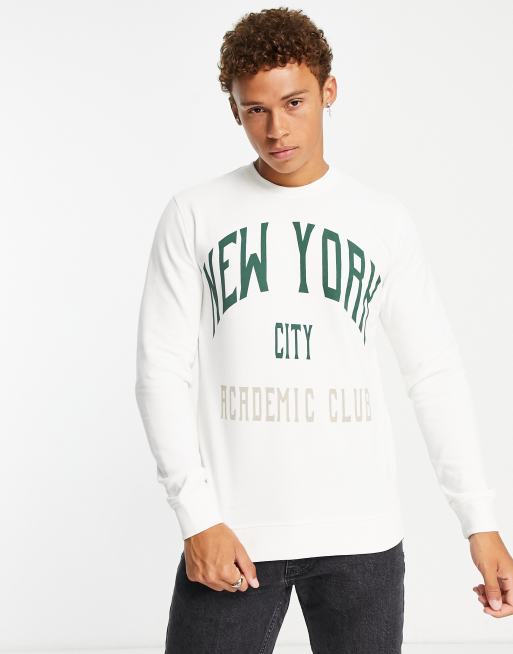 Only & Sons - Hvid sweatshirt med New York-print i college-stil