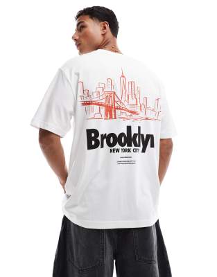 ONLY & SONS - Hvid T-shirt med 'Brooklyn Bridge'-print i afslappet pasform