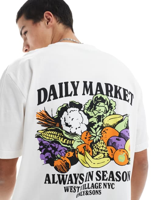 ONLY & SONS - Hvid T-shirt med tekstureret 'Daily Market'-print på ryggen i afslappet pasform