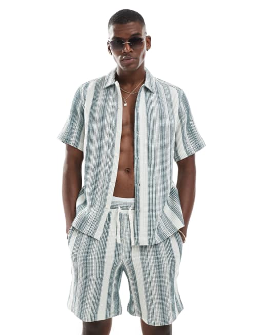 ONLY & SONS - Hvide/grønne shorts med vaffeltekstur - Del af sæt