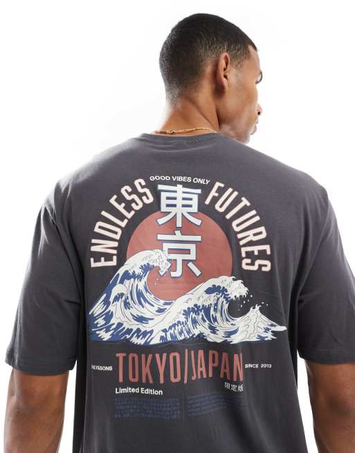 Only & Sons - Koksgrå T i afslappet pasform med bølgeprint på ryggen