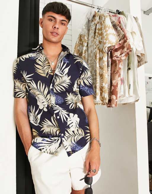 Only & Sons - Marineblå T-shirt med palme- og ananasprint
