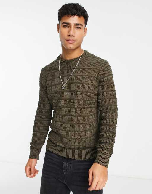 Only & Sons - Ribstrikket trøje med tekstur i khakigrøn