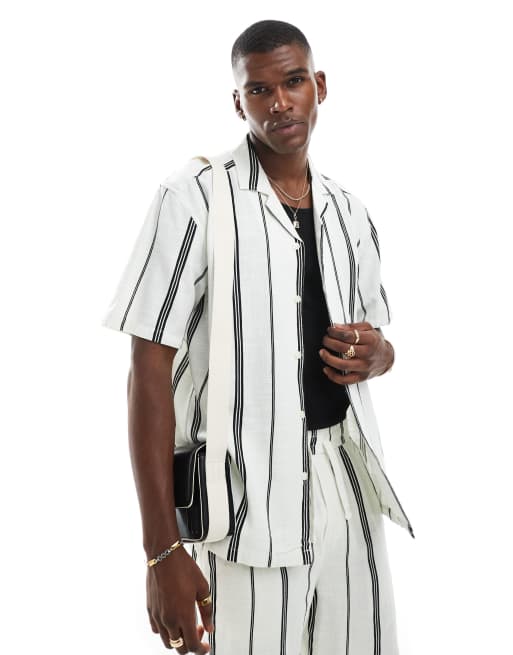 ONLY & SONS - Skjorte med monokrome striber i hørlook - Del af sæt