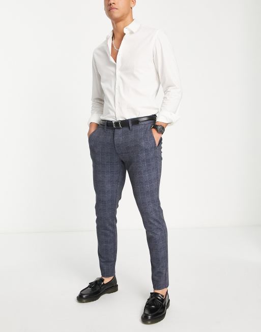 Only & Sons - Slim fit-jerseybukser i marineblåt tern