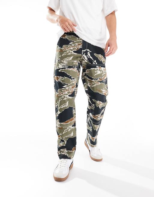 Only & Sons - Sorte og afslappede arbejdsbukser med tigerstribet camouflageprint