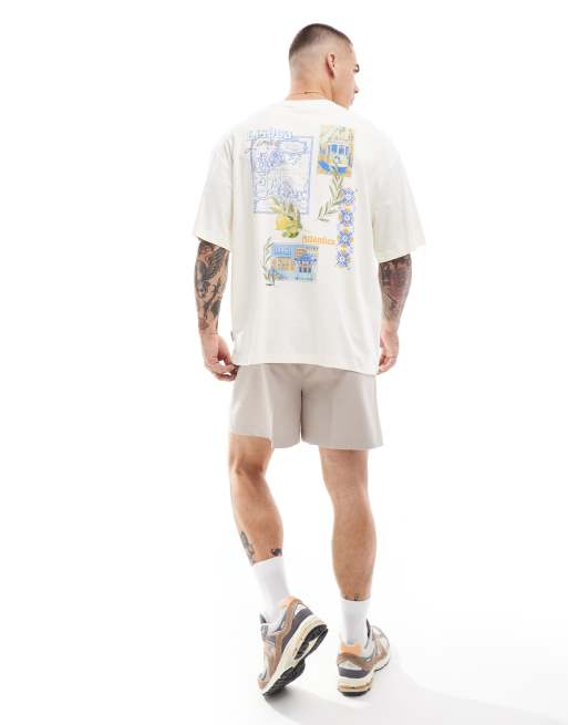 ONLY & SONS - Super-oversized og beige T-shirt med postkort-print på ryggen
