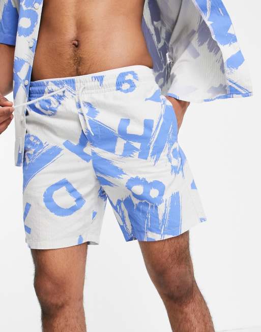 Only & Sons - Teksturerede shorts i blåt print - Del af sæt