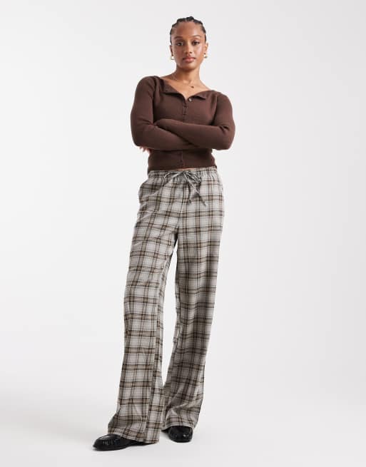 ONLY Tall - Bukser med brede ben og grå tern