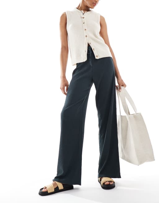 ONLY Tall - Mørkegrå bukser med brede ben og tekstur