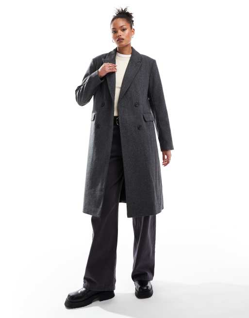 ONLY Tall - Mørkegrå longline-frakke med sildebensmønster