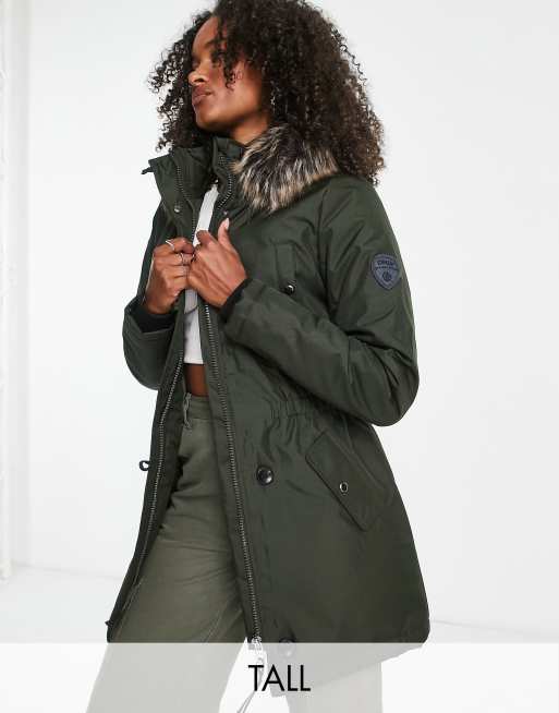 Only Tall - Mørkegrøn parkafrakke med hætte i imiteret pels