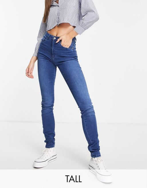 Only Tall - Royal - Mellemblå vaskede højtaljede skinny-jeans