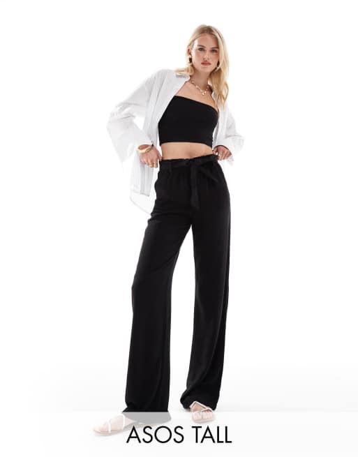 ONLY Tall - Sorte bukser med vidde og bindebånd i taljen i hør