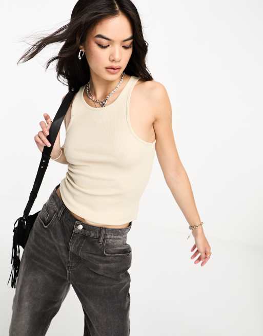 Only - Beige ribstrikket tanktop
