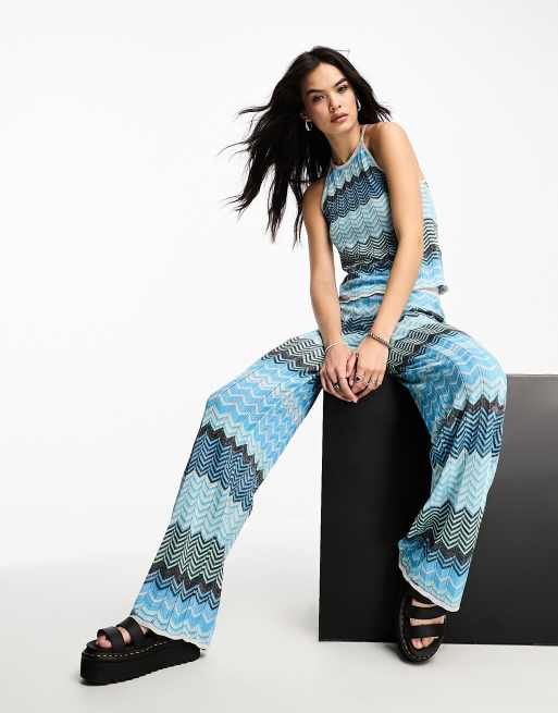 Only - Blå højhalset top med chevron-print og glimmer - Del af sæt