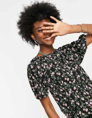 Only - Bluse med åben ryg i sort med småblomstet mønster