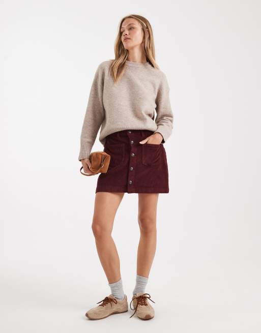 ONLY - Bordeaux nederdel med høj talje i fløjl