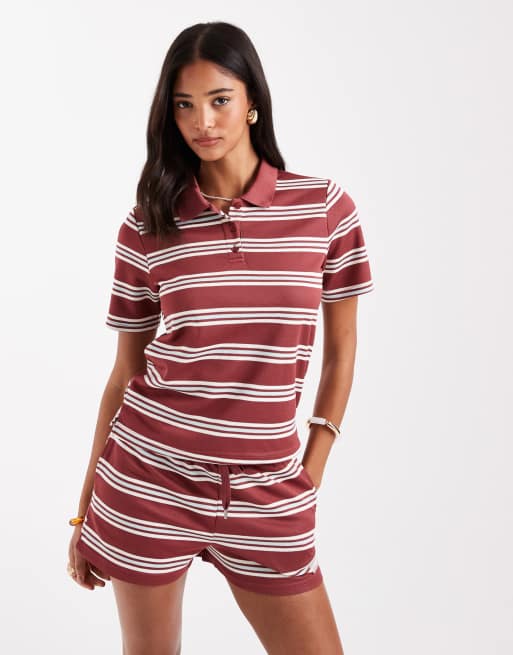 ONLY - Bordeaux polo med tekstur og hvide striber - Del af sæt