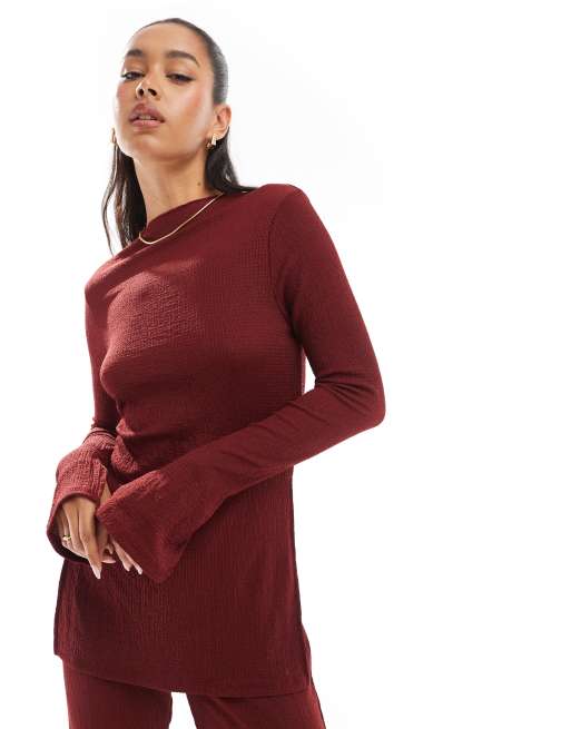 ONLY - Bordeaux top med tekstur og sideslids - Del af sæt
