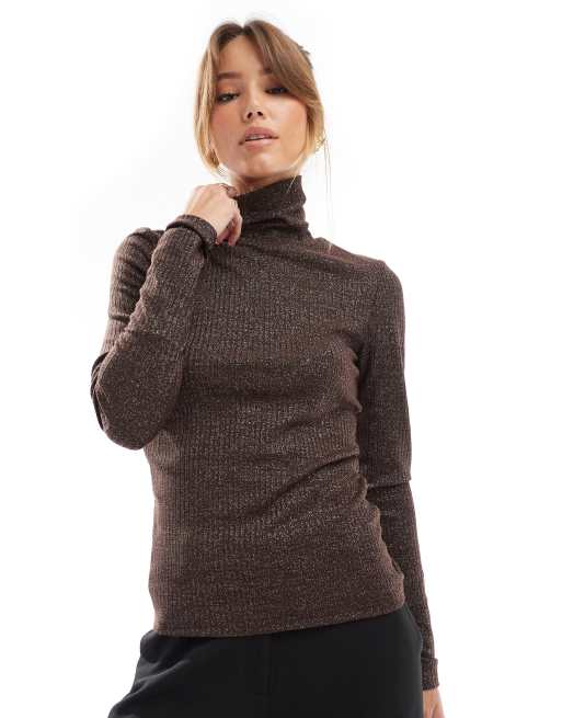 ONLY - Chokoladebrun og højhalset top