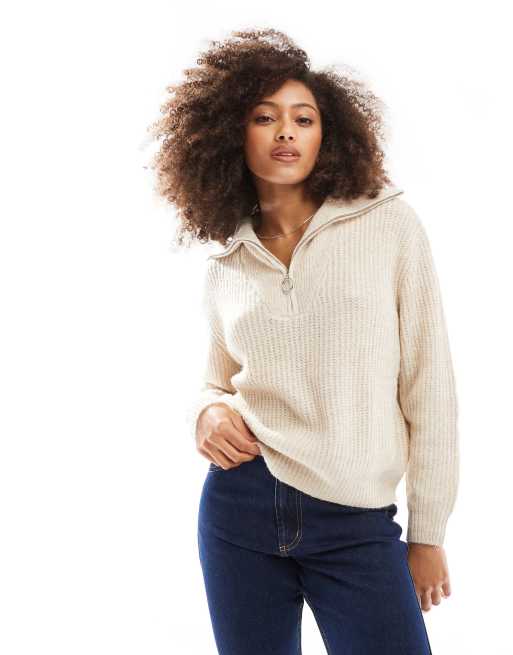 ONLY - Cremefarvet striktrøje med kort lynlås