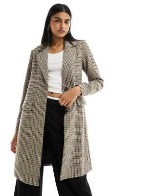 ONLY - Elegant vævet frakke i sorte og brune tern