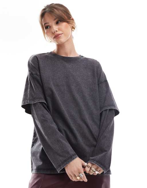 Only - Forvasket grå langærmet lag-på-lag top