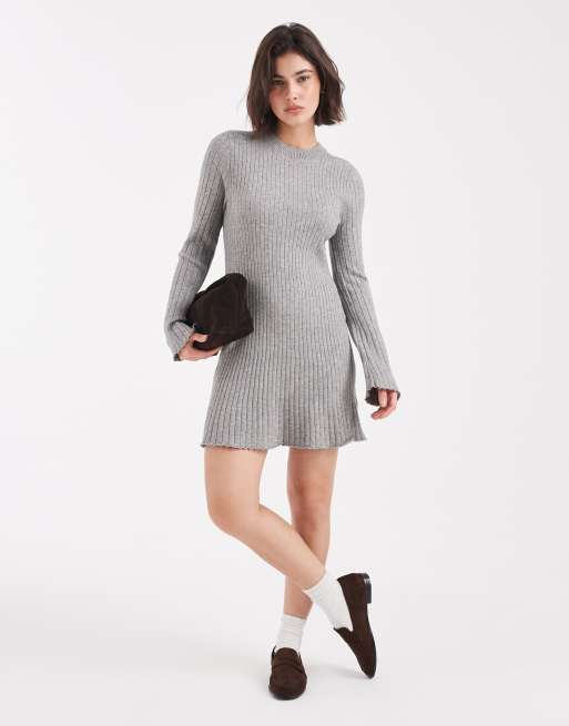 ONLY - Grå ribstrikket minikjole