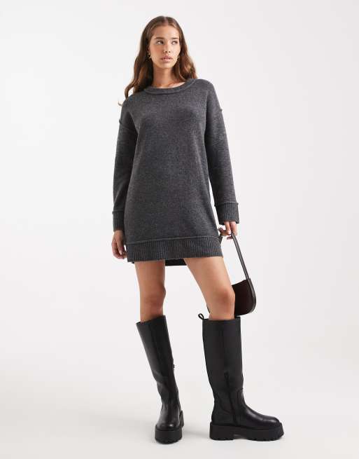 ONLY - Grå strikket minikjole med sænkede skuldre