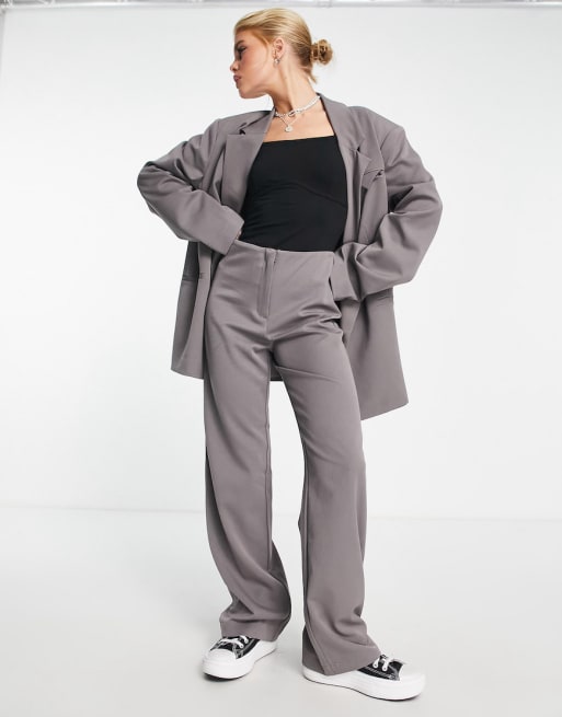 Only - Gråt sæt med oversized blazer og skræddersyede bukser
