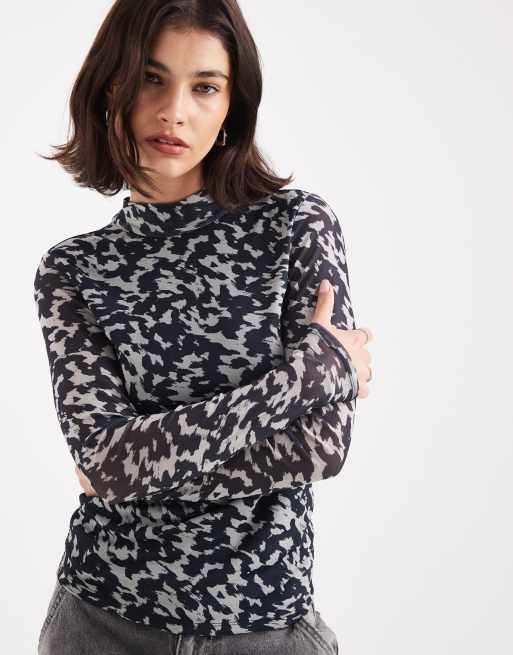 ONLY - Højhalset gennemsigtig top med dyreprint