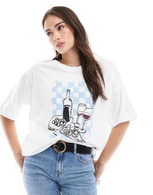 ONLY - Hvid oversized T-shirt med vingrafik