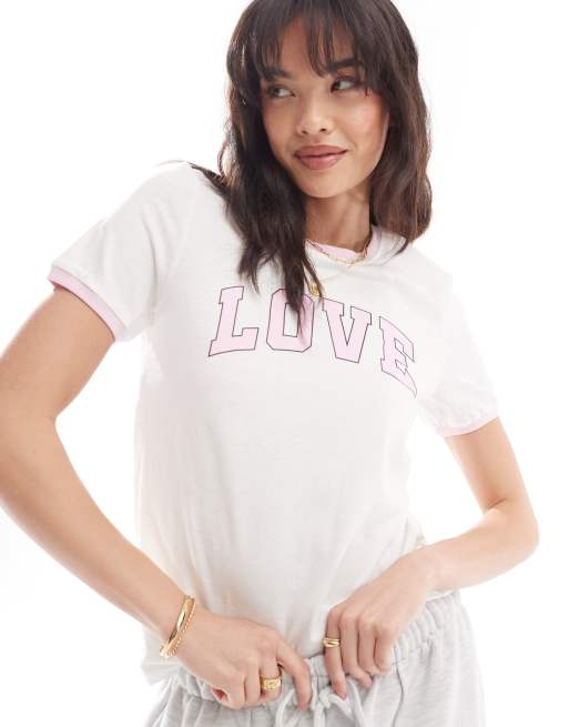 Only - Hvid T-shirt i firkantet pasform med Love-print