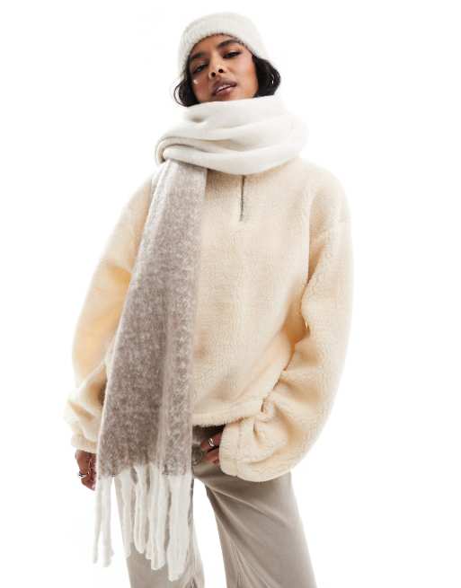 ONLY - Hvidt og gråt langt tørklæde med frynser