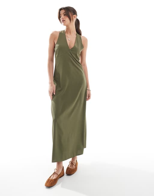 ONLY - Kakigrøn maxikjole med krydsdetalje på ryggen
