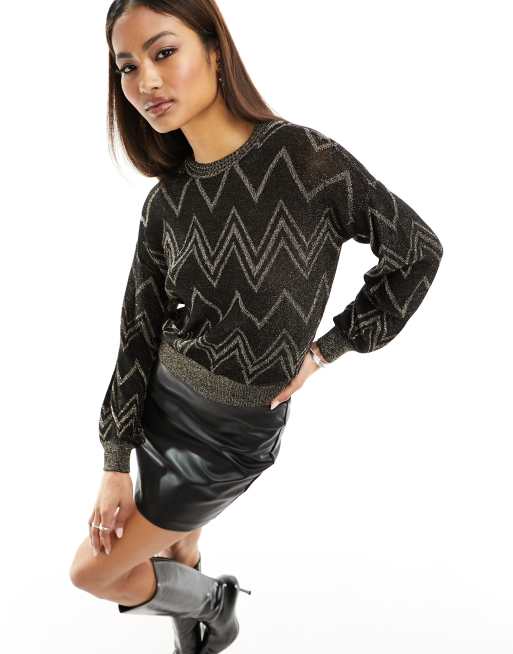 Only - Let trøje med glimmer og chevron-mønster i sort og guldfarve