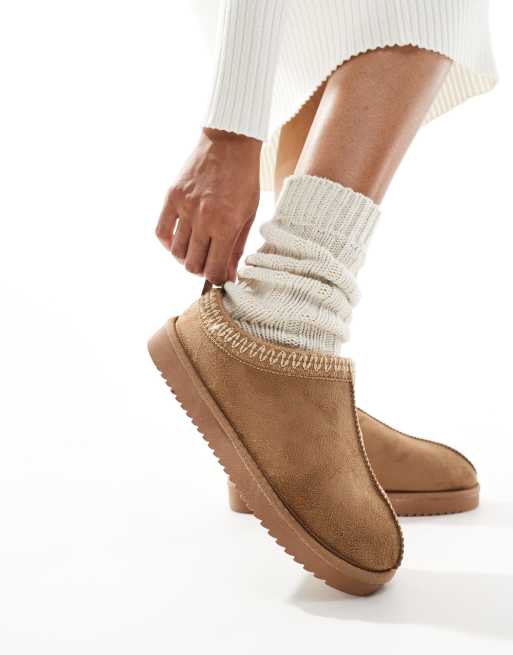 ONLY - Lysebrune hjemmesko med for i imiteret teddy-ruskind