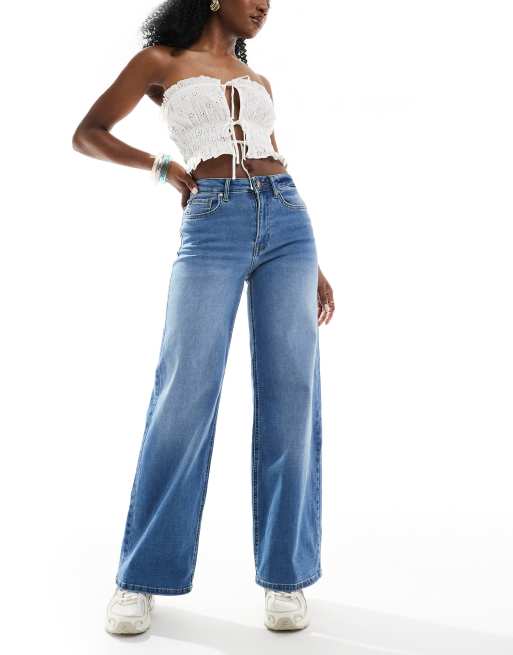 ONLY - Madison - Mellemblå jeans med høj talje og vide ben