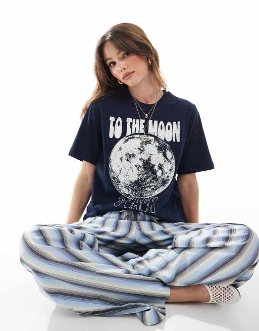 ONLY - Marineblå boyfriend-T-shirt med månegrafik