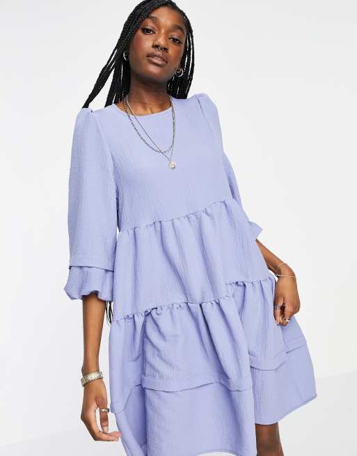 Only - Midi-smockkjole med ærmedetalje og lag i lavendelblå